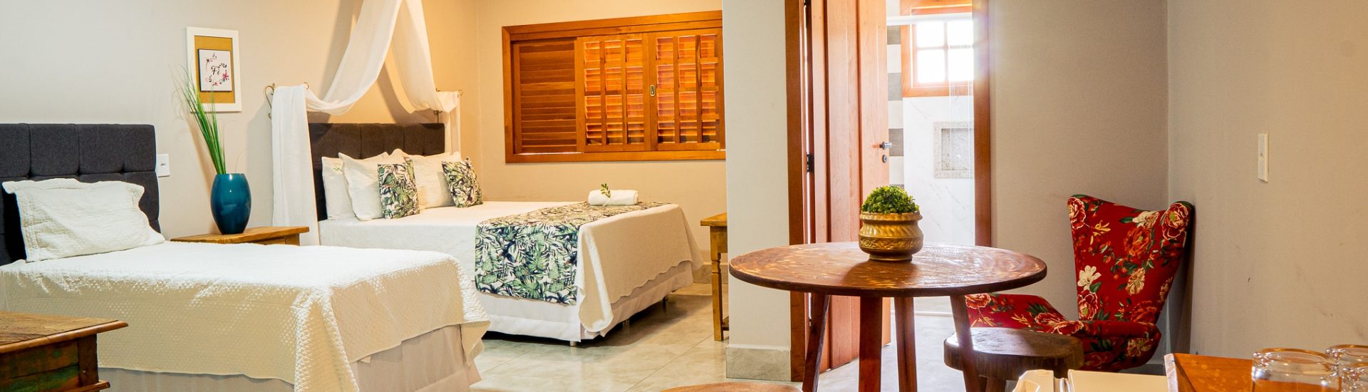 Conforto e espaço para até 3 pessoas, com opção de cama extra sob demanda.Itens inclusos: Cama King Size (casal), Cama de solteiro adicional, Ar-condicionado