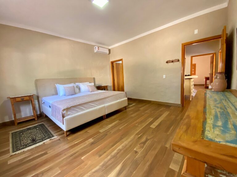 Composto por: Cama de casal King - Cama de Solteiro - Ar condicionado - Televisão. Para 3 pessoas e se necessário, coloca-se uma cama extra. Quartos e banheiros grandes, tudo novo, decoração e itens de luxo.