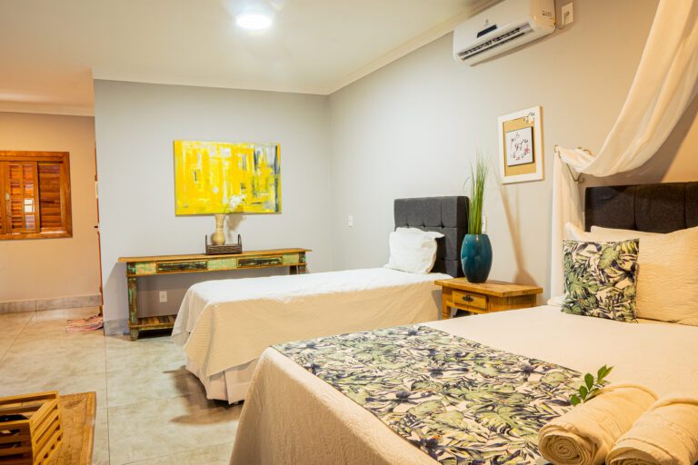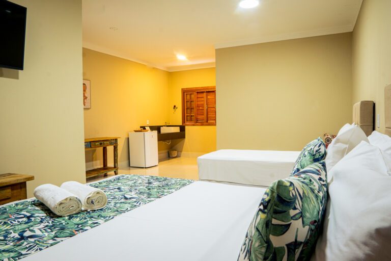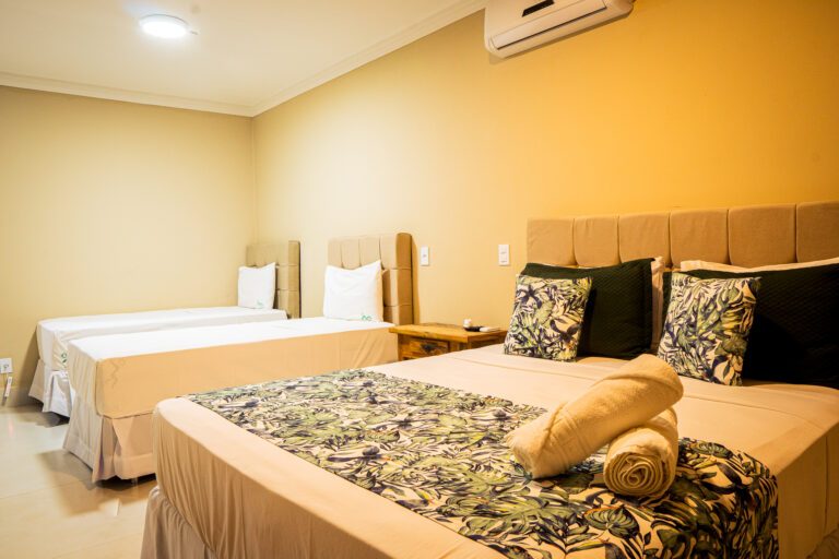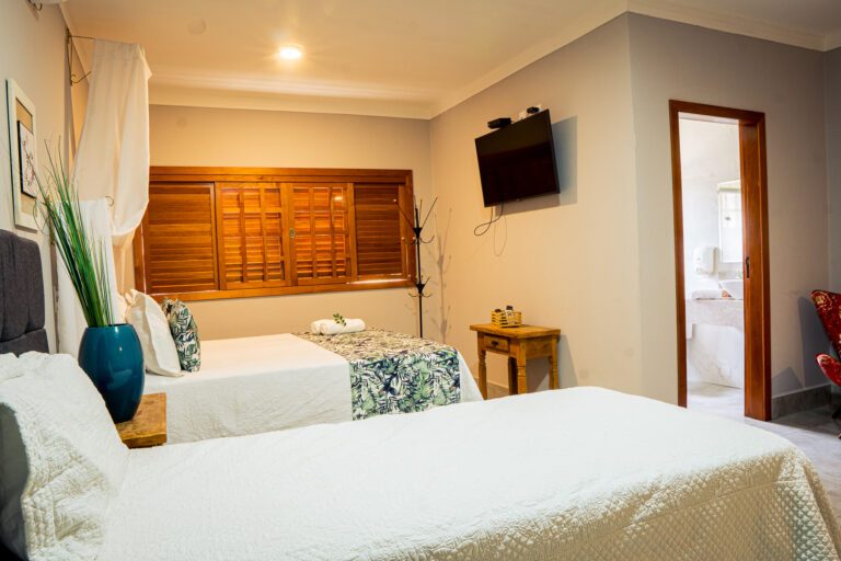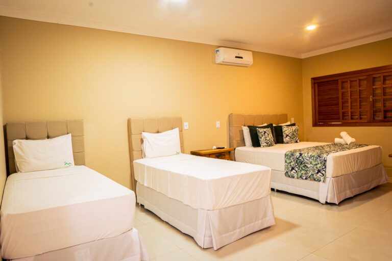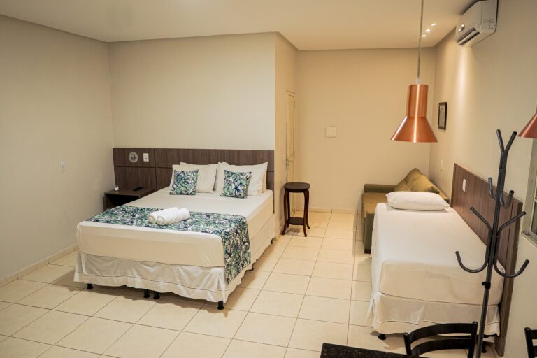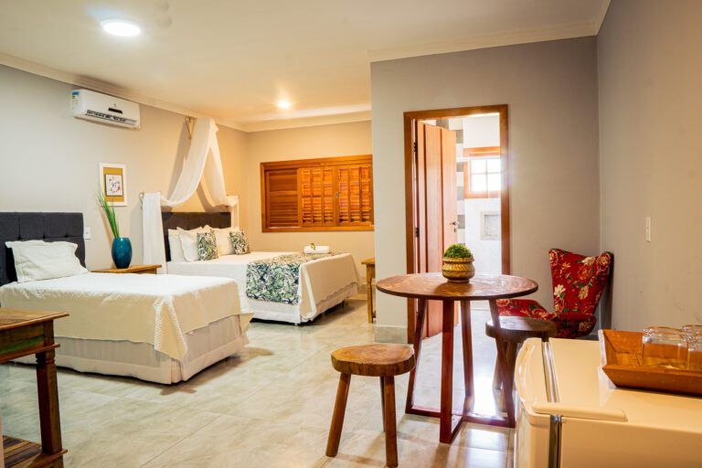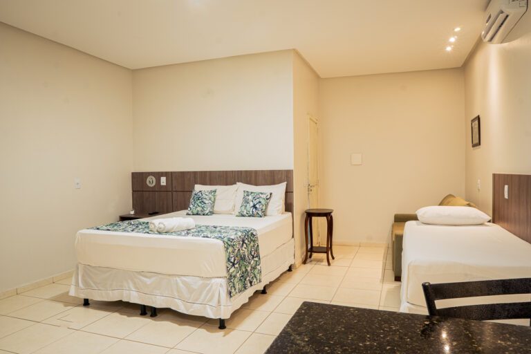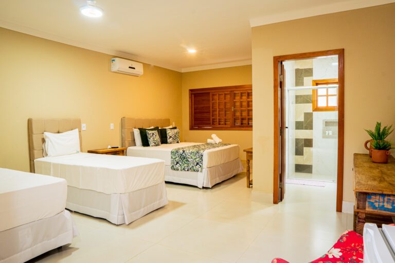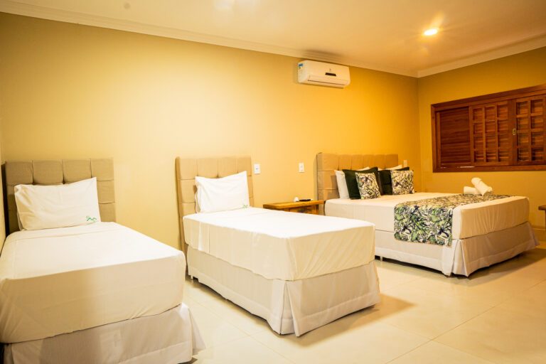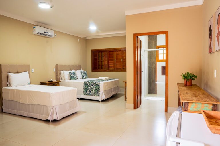 Conforto e espaço para até 3 pessoas, com opção de cama extra sob demanda.Itens inclusos: Cama King Size (casal), Cama de solteiro adicional, Ar-condicionado