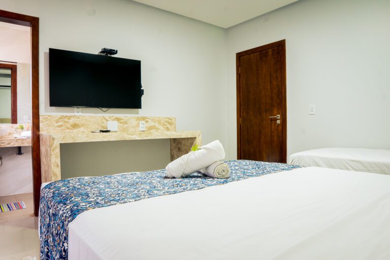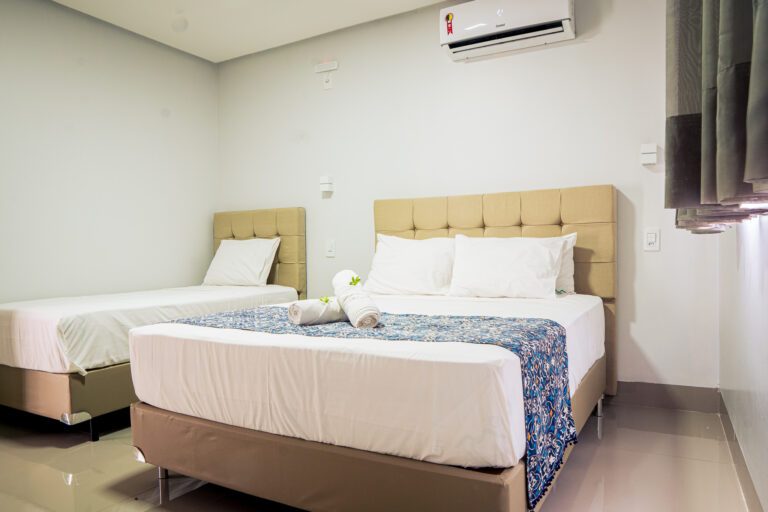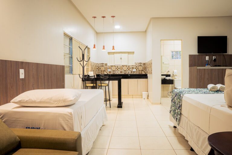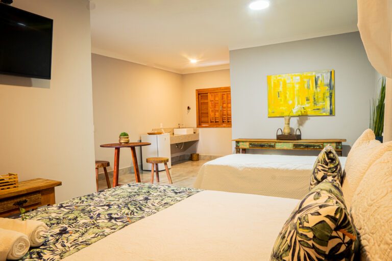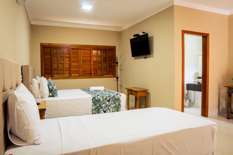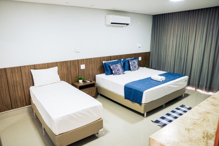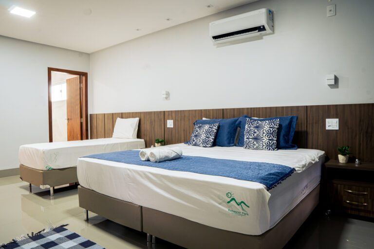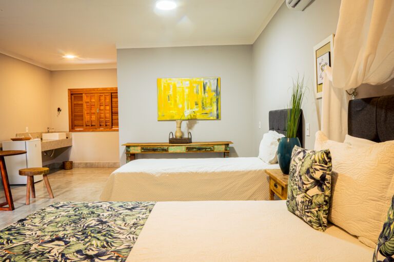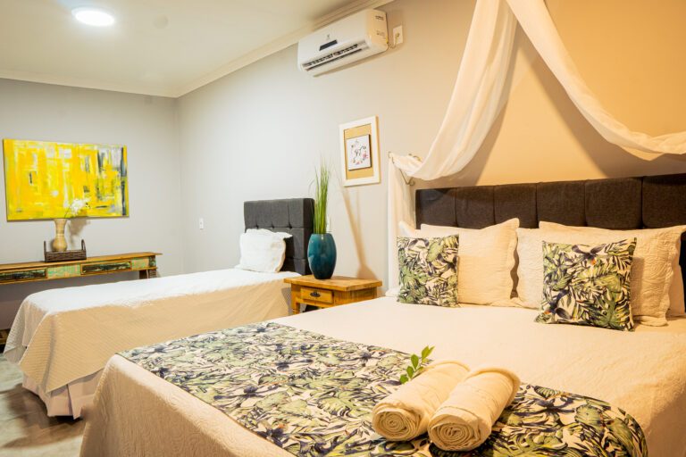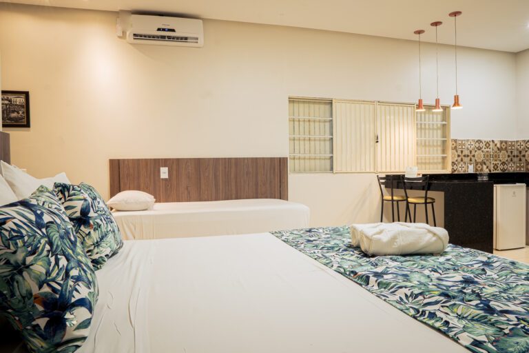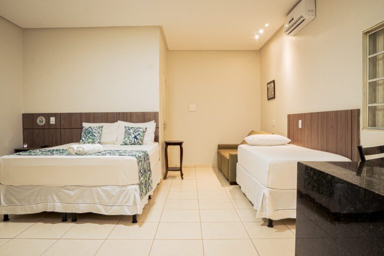 Conforto e espaço para até 3 pessoas, com opção de cama extra sob demanda.Itens inclusos: Cama King Size (casal), Cama de solteiro adicional, Ar-condicionado