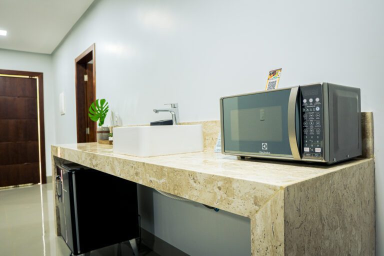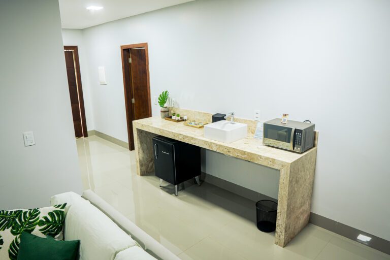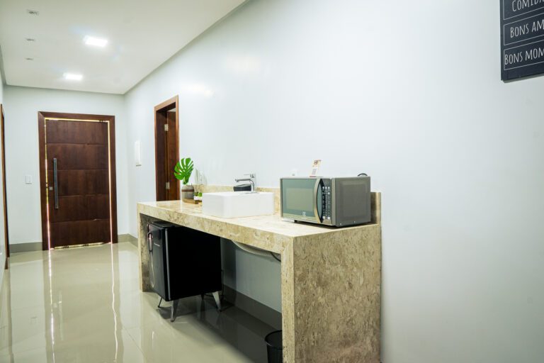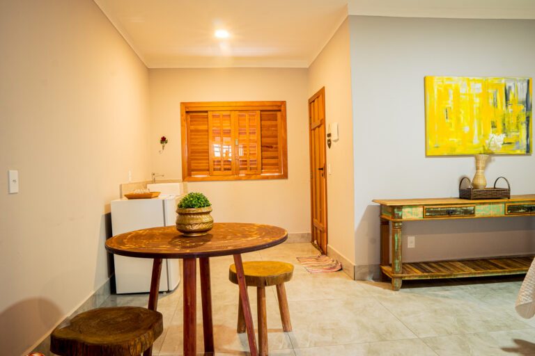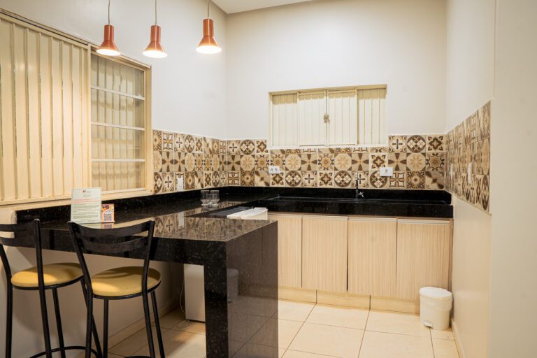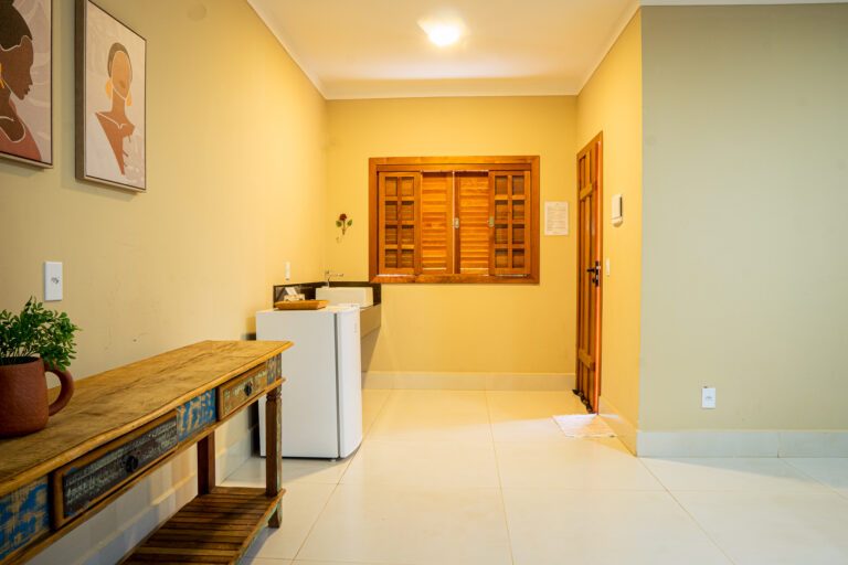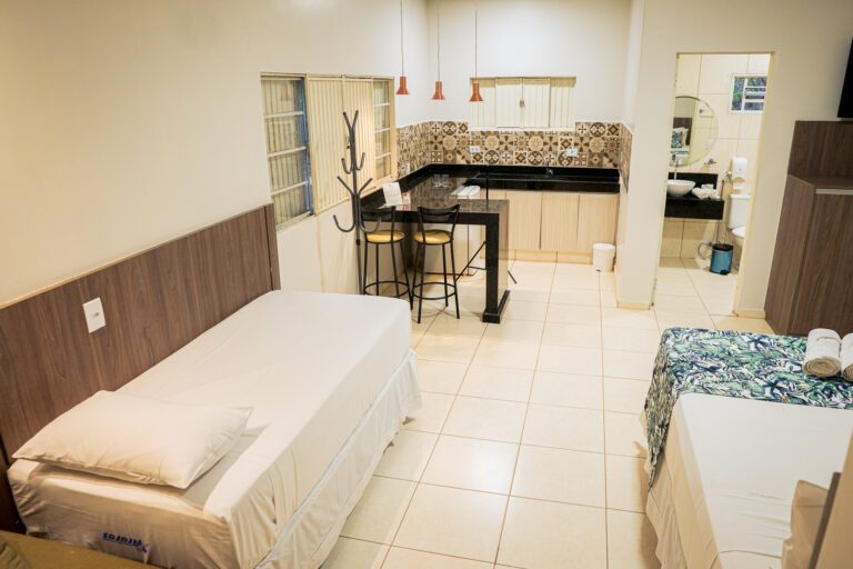 Frigobar, mesa de apoio para 2 pessoas e internet gratuito